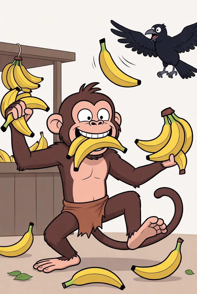 • A very greedy monkey stole 18 bananas from the market. He ate 7 bananas, dropped 5 by mistake while dancing, and threw 2 at a crow. What fraction of the bananas does the monkey still have left?